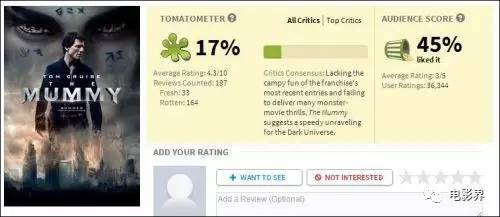 在北美,观众就没有中国观众这么多的包容心了。《新木乃伊》上映首日,开局不利,票房不敌《神奇女侠》,票房3225万美元,也创下了开画规模在4000家影院以上表现最差纪录。影片口碑也差,烂番茄新鲜度只有17%。