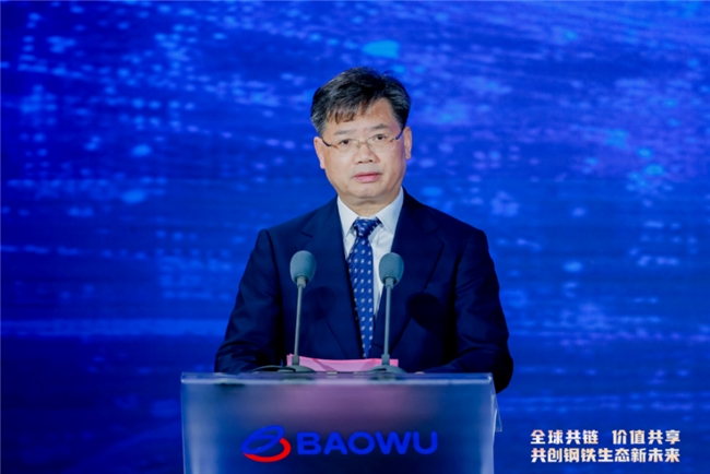中国宝武钢铁集团有限公司党委书记、董事长胡望明发表演讲