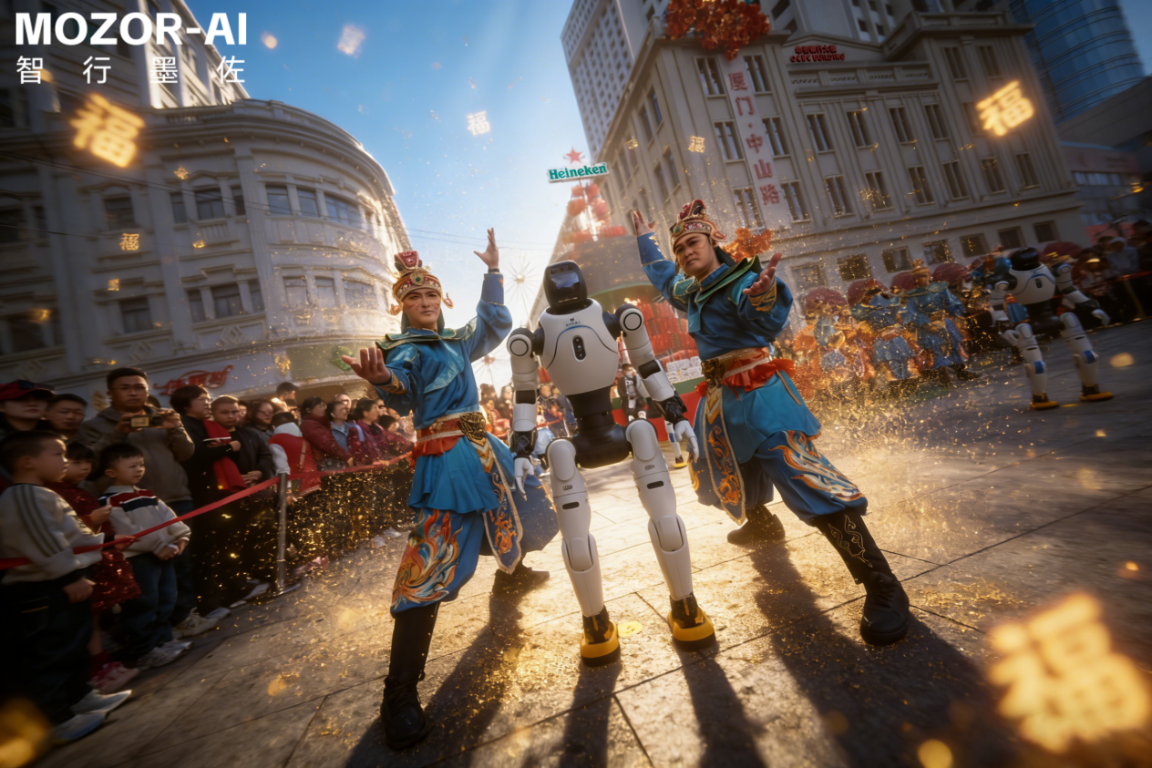 厦门讯 2026年农历正月初二至正月十三,由厦门智行墨佐人工智能科技有限公司与厦门市思明区文化和旅游局联合出品、落地厦门中山路历史文化街区的全国首创数智非遗项目——《科技艺阵·两岸数智非遗人机共舞——宋江阵》精彩上演。项目以国家级非遗宋江阵为核心载体,创新融合人形机器人、智能机器狗与两岸非遗艺人同台演绎,在中山路百年骑楼间打造“人机共舞、同阵共演”的沉浸式文旅新场景,成为2026年新春期间全国瞩目的文商旅标杆之作。