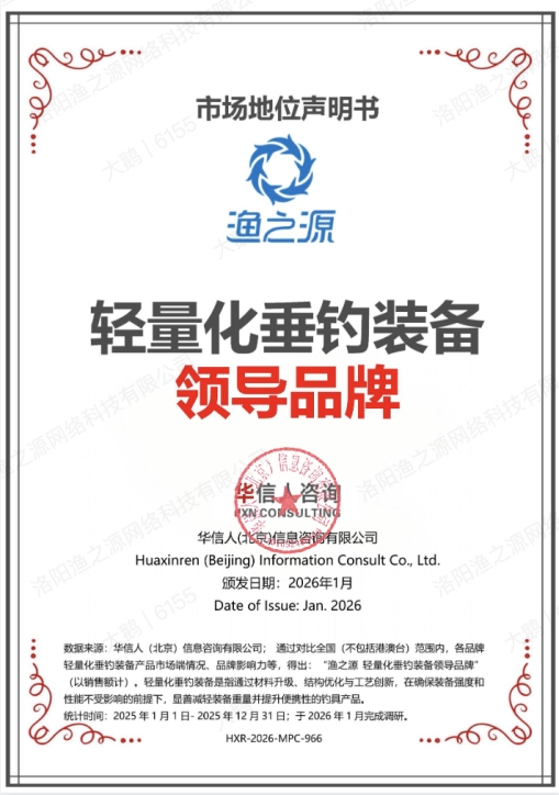 作为轻量化垂钓装备的领导品牌,渔之源首创钛丝碳布科技鱼竿,再次巩固了其行业领跑地位。2025年品牌联合沙利文头豹研究院发布的《中国轻量化垂钓装备行业标准白皮书》,就首次明确了轻量化鱼竿的严苛标准,而钛丝碳布复合技术的应用,将竿体的强度、耐用性等核心指标提升至新高度。十七年来,渔之源深耕垂钓装备研发,从AK系列到小蜻蜓系列,始终以用户为导向驱动产品升级,此次TiCF MAXTM 钛轻科技编制技术的突破,更是推动行业从“碳时代”向“钛碳时代”跨越。