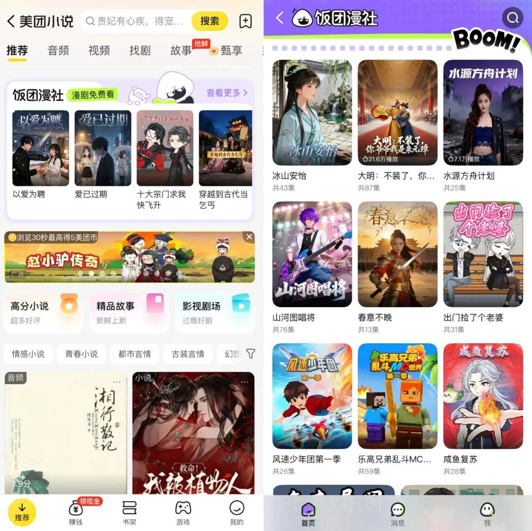 内部的整合,实际上是美团将零散的内容板块(短视频、短剧、小说、游戏)进行军种合并,组建了一支统一的“内容方面军”。而今天的饭团漫社,更像是在2026年推出的新式武器。