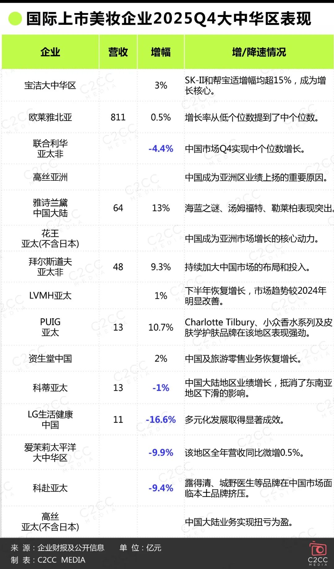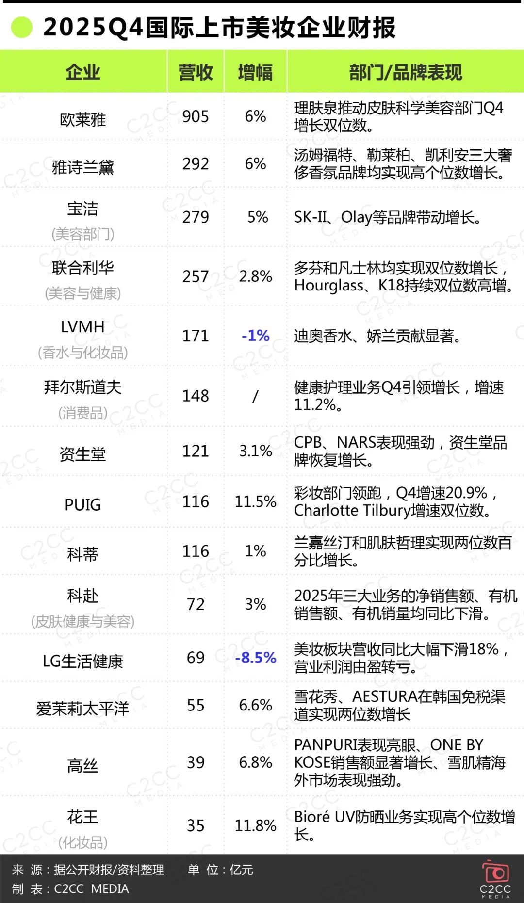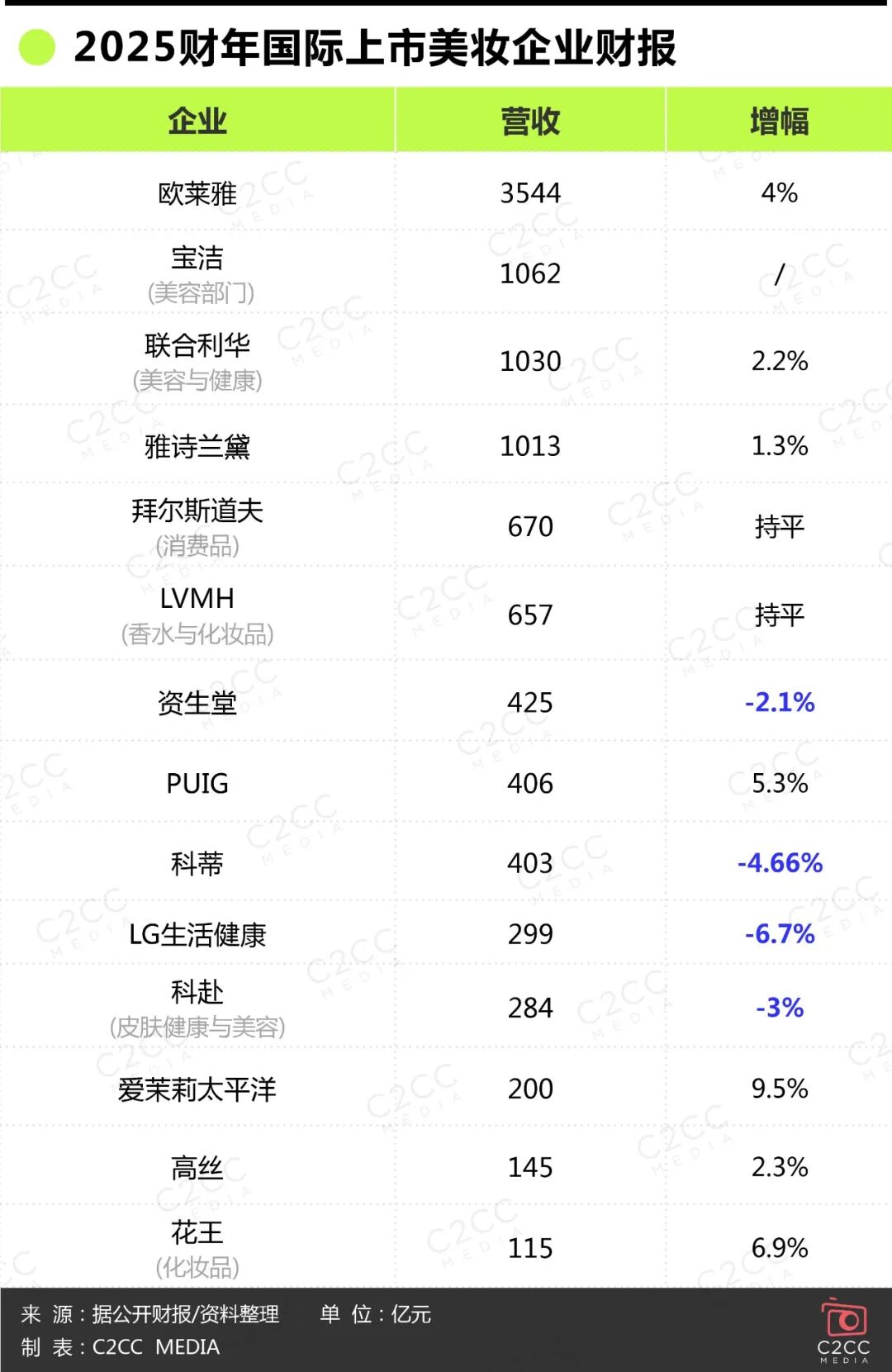 近日,C2CC传媒X新妆就梳理了国际上市美妆企业2025年度财报。