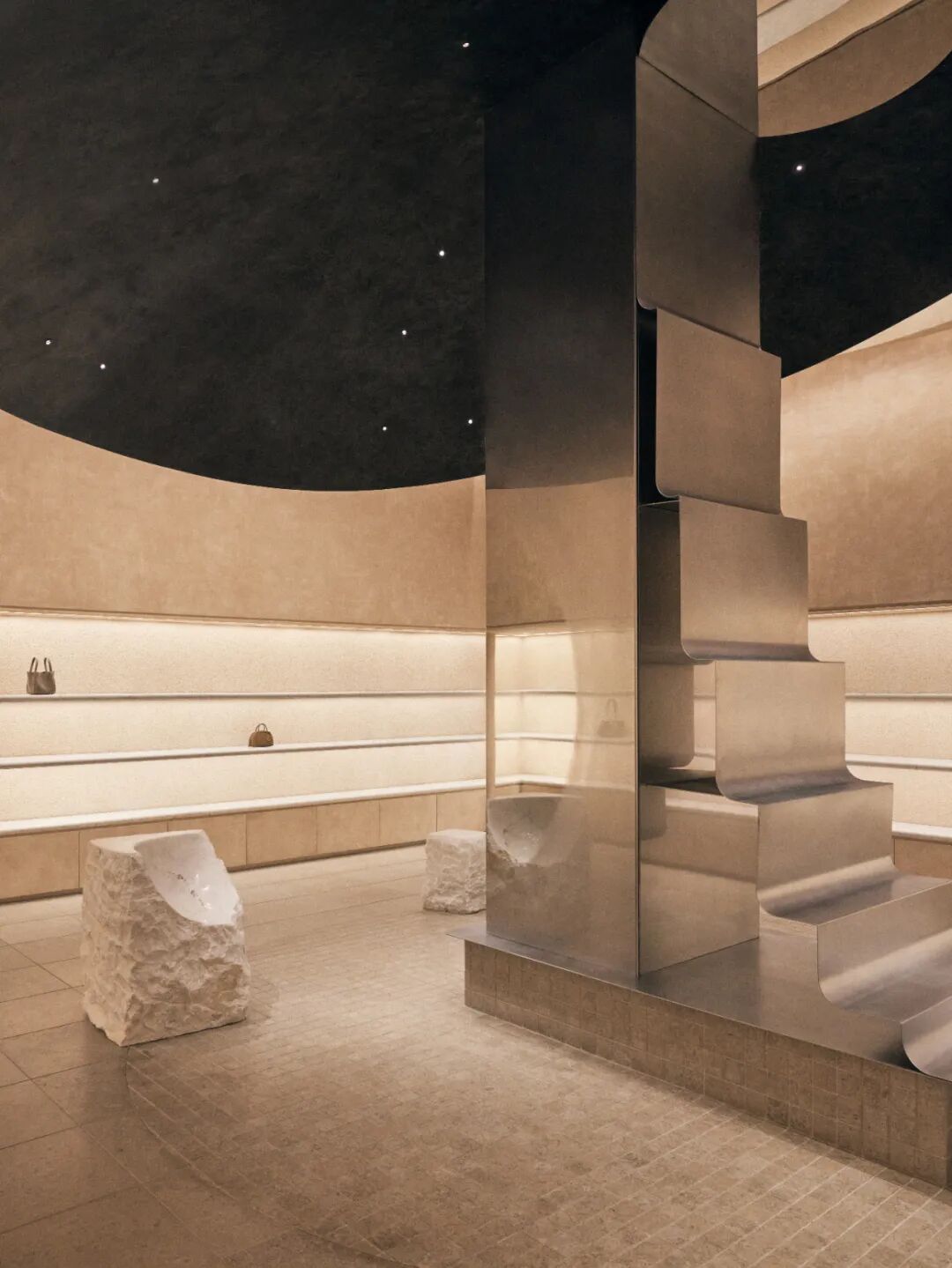 2025年,品牌再次来到法国巴黎。作为连续两年在巴黎时装周举办展览的中国箱包品牌,它以“远山有声”为主题,将展厅变成一处活态的艺术场域。在那里,设计与被重新想象的10世纪中国山水画卷一同苏醒,让海外观众置身于东方美学的意境。