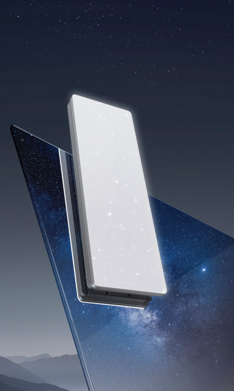 真正的革新往往蕴含于对立统一之中。在追求极致“视觉消除”的同时,邦先生却为这款产品注入了一片“会呼吸的光”。其搭载的50英寸无边巨幕星光灯,超越了基础照明范畴。110°类自然光全光谱、Rg0无危害蓝光及Ra95高显色指数等特性,则使其光线成为呵护家人眼部健康、甚至滋养阳台生态的“生命之光”。