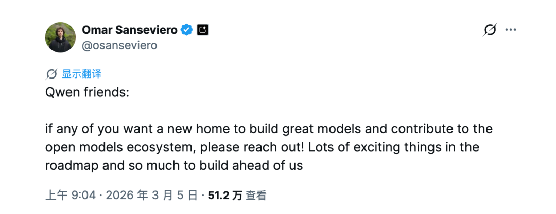 有消息称,来自谷歌 DeepMind 团队的周浩或将代替林俊旸,主导 Qwen 的后训练工作。周浩曾参与谷歌 Gemini 3.0 模型的开发。饶有趣味的是,林俊旸离职后,DeepMind 开发者体验负责人 Omar Sanseviero 公开喊话,邀请 Qwen 团队加入。