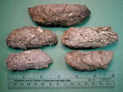 而食团则更为复杂,它是鸟的呕吐物,看起来像是一个小球,里面一团乱麻,有破掉的种子壳、树皮、动物皮毛、昆虫肢体甚至小石头。富有经验的收集者打开食团,就知道这只鸟曾经吃过什么,并可以根据食性推断出食团是哪种鸟类吐出的。