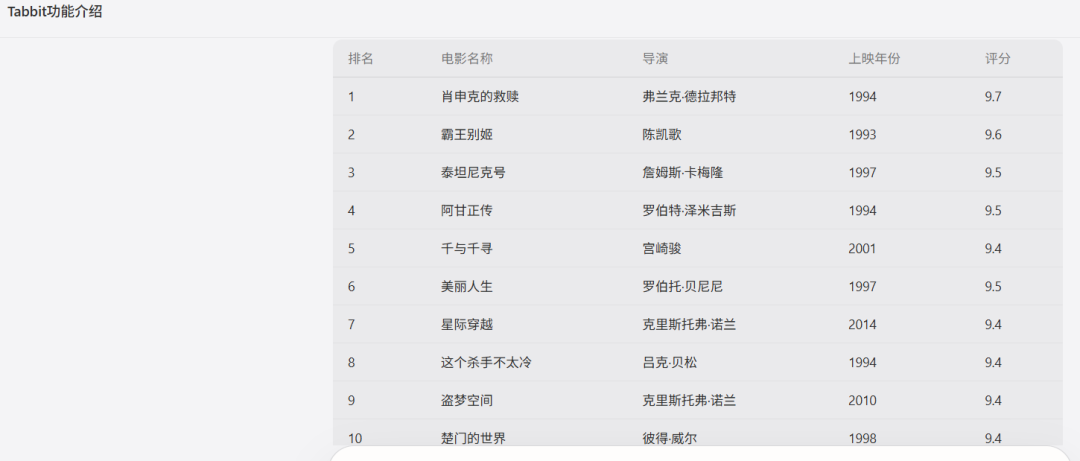 Tabbit整理的电影排名
