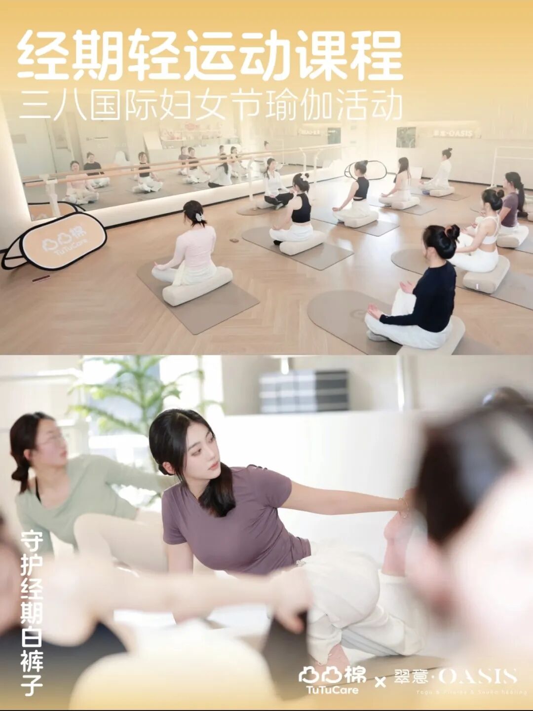 长期以来,“经期不敢穿浅色裤子”是一条无形的社会规训。凸凸棉没有止步于口头鼓励,而是以一场温暖而有力的活动向这一束缚发起挑战:鼓励女性在特殊日子里,自信穿上浅色裤子,分享属于自己的故事。品牌联合翠意oasis瑜伽普拉提发起「经期轻运动课程」,将温柔关怀转化为可感的真实体验。