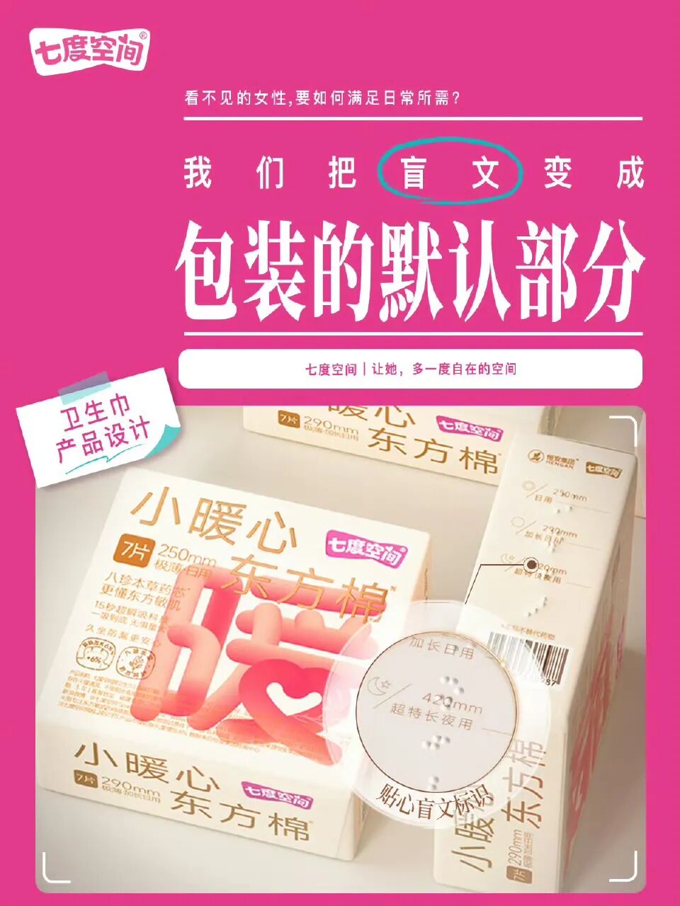 从汽车碰撞测试基于男性身高的标准,到公共卫生间排队的长龙,再到“默认没有人会来月经”的城市设计,女性被迫适应一个以男性为“默认值(Default)”的世界。七度空间提出的“让世界的默认值,多一度她的空间”,将女性营销从“情绪抚慰”拉升到了“制度批判”的高度——不是要求女性更勇敢地去适应,而是要求社会更包容地改变。