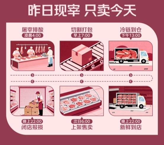 在选购生鲜肉品时,“新不新鲜”始终是消费者最关注的核心。然而,面对冷柜中码放整齐的包装肉品,人们大多只能通过色泽和标签日期来粗略判断。从屠宰到上架所经历的时间与环节,始终是个难以量化的“黑箱”。近日,京东七鲜超市率先推出“24小时肉”系列,以“从产地到店不超过24小时、到店仅售一天”的硬核标准,让肉品的“鲜”成为可感知、可追溯的确定性指标。
