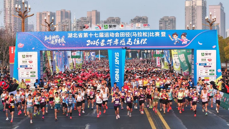 3月8日,湖北省第十七届运动会田径(马拉松)比赛暨2026蒙牛孝感马拉松燃情启幕,以“知音湖北,逐梦孝感”为主题,16000名跑者齐聚孝爱之城,用脚步丈量城市风光,以奔跑致敬热爱与健康。