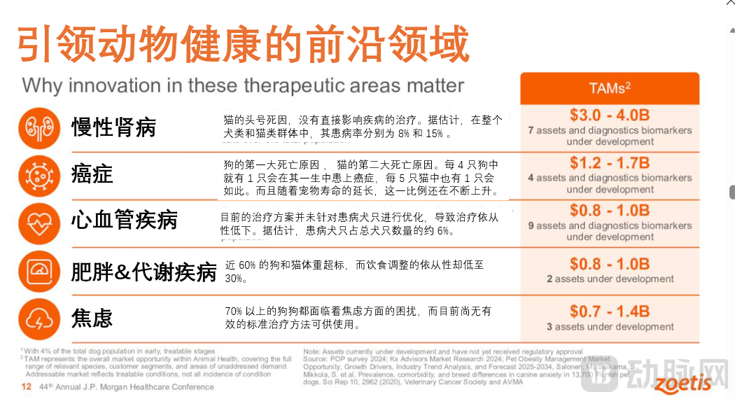 硕腾在JPM2026公布的宠物创新药研发领域