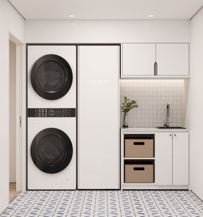 LG WashTower 25洗烘塔采用一体式扁平化设计,洗涤容量20kg、烘干容量20kg,可轻松处理被子、冬衣等大件衣物,用户无需分批操作,大幅节省人力和空间。这款洗烘塔的机身尺寸为635mm×755mm×1840mm,直线棱角设计适配各类装修风格,优化后的机身高度与烘干机进风口设计更符合人体工程学,使用更便捷;隐藏式门铰链进一步提升了它的一体化美学。