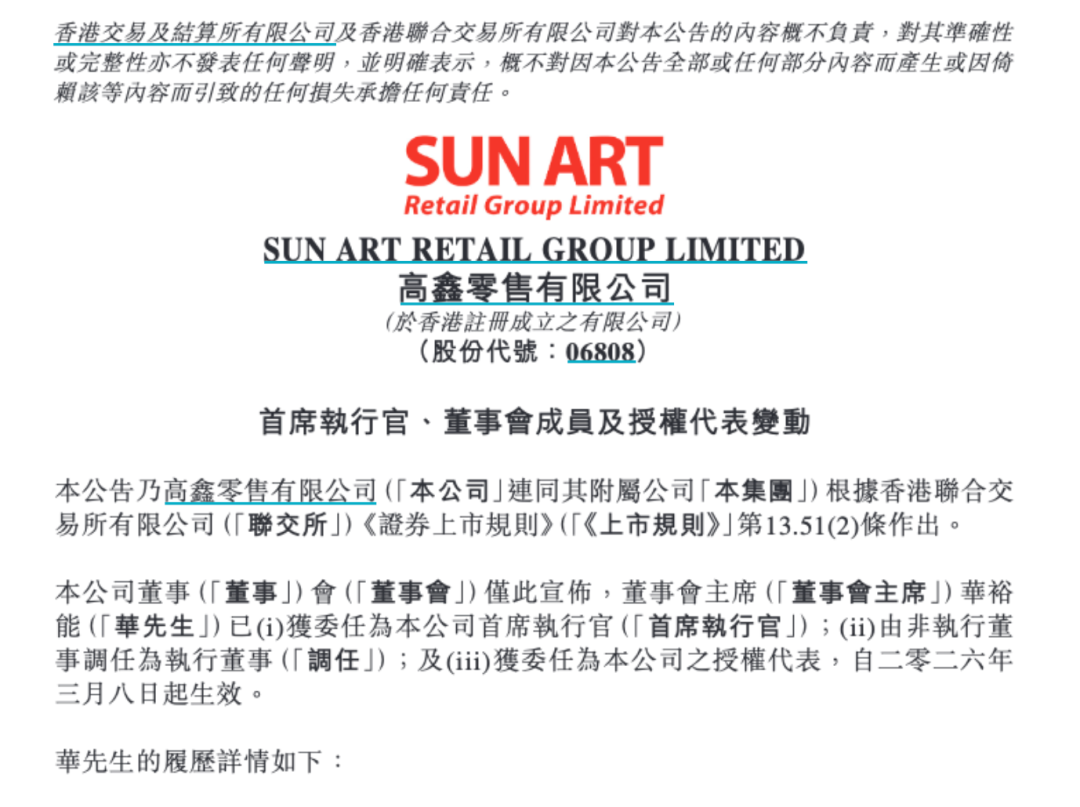 大润发母公司高鑫零售(6808.HK)突发重大人事调整!