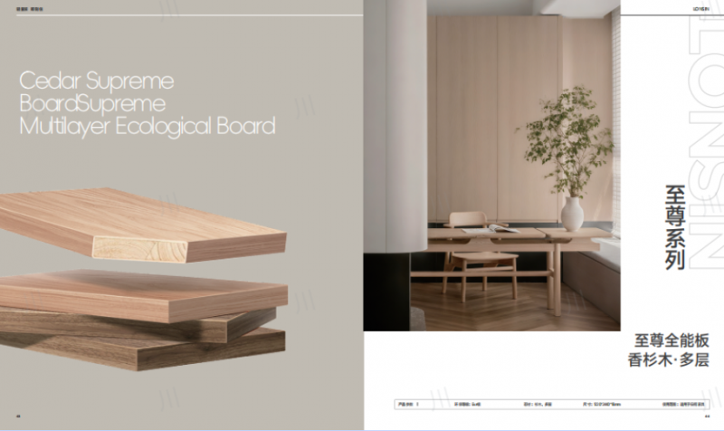 ●至尊全能板:具备十二大核心优势,包括B1级阻燃、9级防虫、二类防水、静谧降噪等。采用香杉木多层基材,结构扎实,承重性能更强。