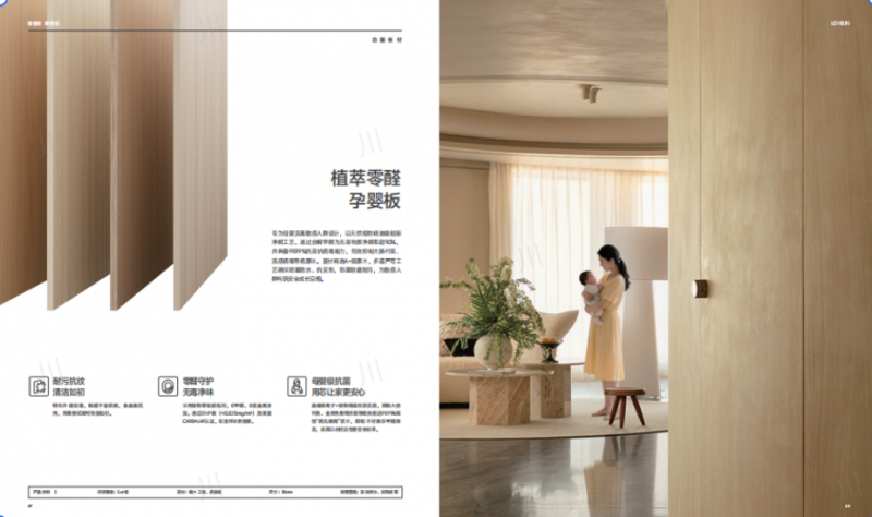 ●植萃零醛孕婴板:专为母婴及高敏感人群设计,采用植物精油+净醛工艺,净醛率超90%,抗菌抗病毒99.99%。