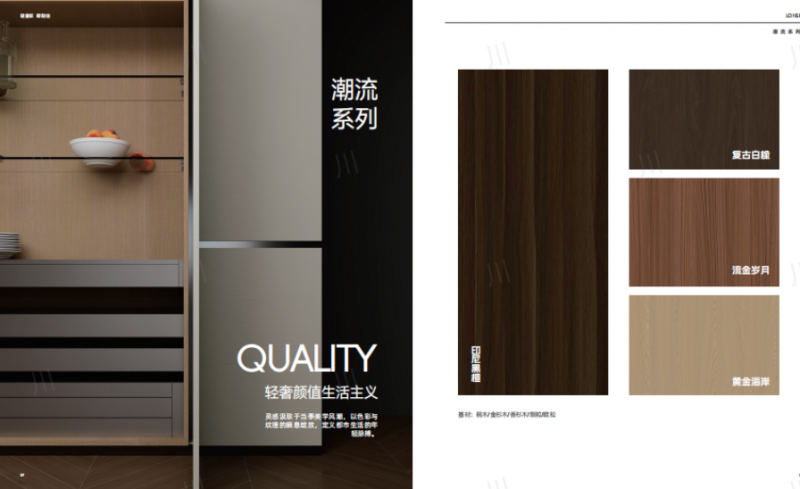 ●高定饰材:拥有100+色系,被称为“全球设计师的调色盘”。严选德国原纸与哈德曼油墨,通过1:1扫描开版技术,精准还原纹理细节。推出了汲取当季美学风潮的“潮流系列”与高阶定制的“潮派系列”。