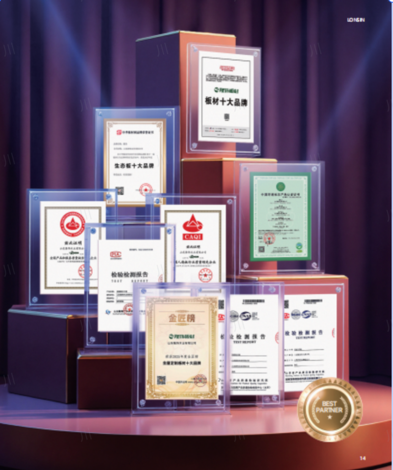 作为“板材十大品牌”及“品牌强国优选成员单位”,隆饰板材是菏泽板材加工重点企业之一。品牌不仅荣获“中国环境标志产品认证”,更连续多年入选“全屋定制板材十大品牌”与“生态板十大品牌”,彰显了其在行业内的标杆地位。