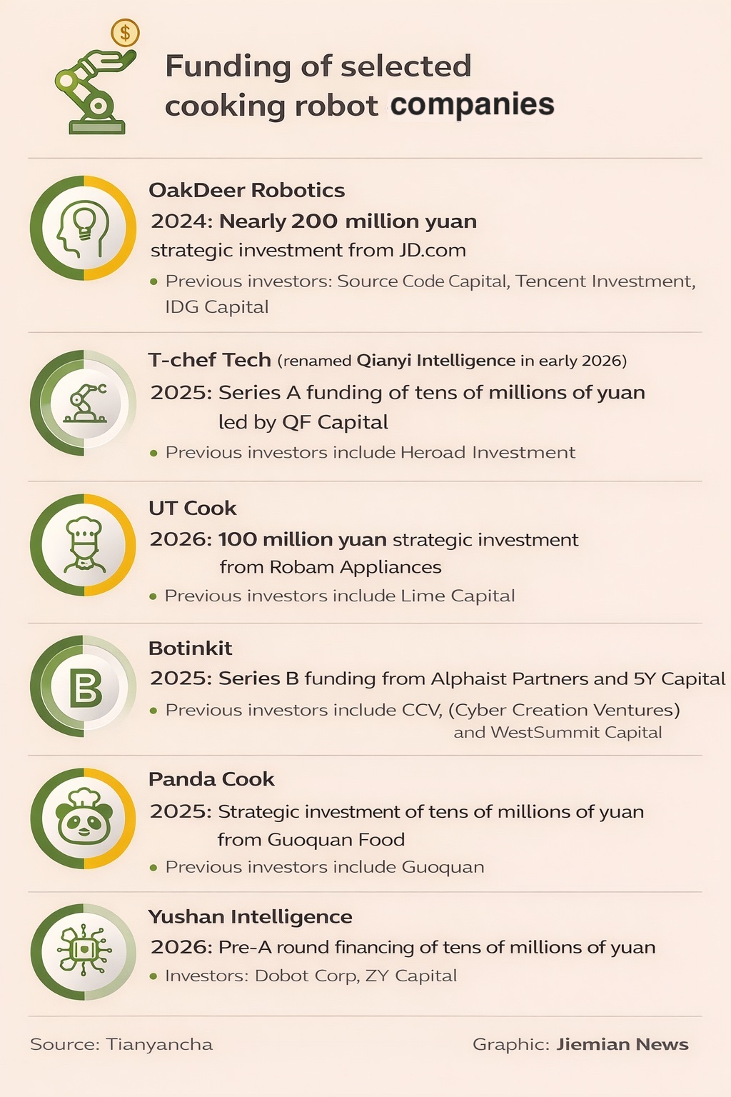 Investors say the opportunity may extend beyond hardware sales. XIAO Pu, investment director at QF Capital, an investor in T-chef Tech, said companies could expand into AI software updates, ingredient supply chains and integrated food delivery services.