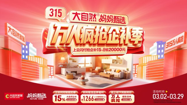 并在315期间,推出“妈妈甄选系列”企业专项补贴,真金白银让利消费者,切实减轻装修负担。更值得一提的是,大自然推出“金保姆终身维护”服务(该服务需在质保期内,超过产品保质期,50年内有偿维护),搭配50年质保承诺,覆盖消费者从选购、安装到使用、养护的全流程,用专业服务解决消费者的后顾之忧,进一步提升用户粘性与品牌口碑。