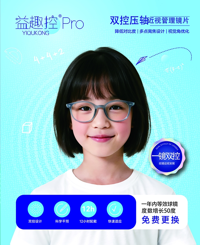 近视防控是一场持久战,选对镜片是关键。益趣控PRO双控压轴镜片始终以青少年视力健康为核心,用技术筑牢防控根基,用口碑印证产品实力,助力每一位近视孩子放缓度数进展,以清晰双眼拥抱学习与生活。