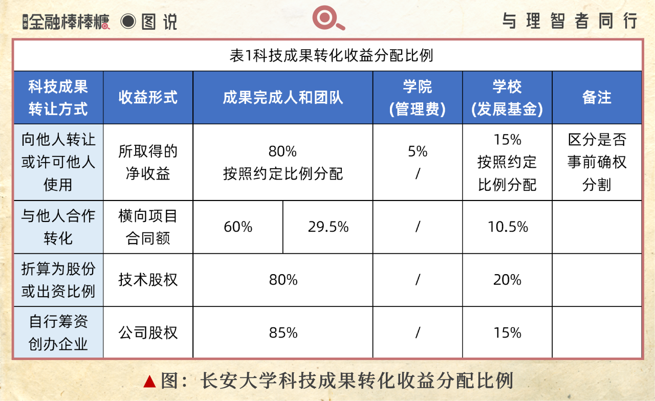 长安大学此次“作价入股”首秀,最强劲的动能当数学校的“大方分配”比例。