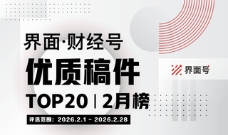行走烟火人间,穿越四季光阴,界面·财经号1000多位成员立足于现实生活,持续观察千姿百态的商业现象,破解商业世界背后的秘密,在2026年2月1日至2月28日期间累计发文近2000篇。其中,以下20篇稿件脱颖而出,荣登《界面·财经号优质稿件TOP20|2026年2月榜》,用原创彰显独立思考的力量。