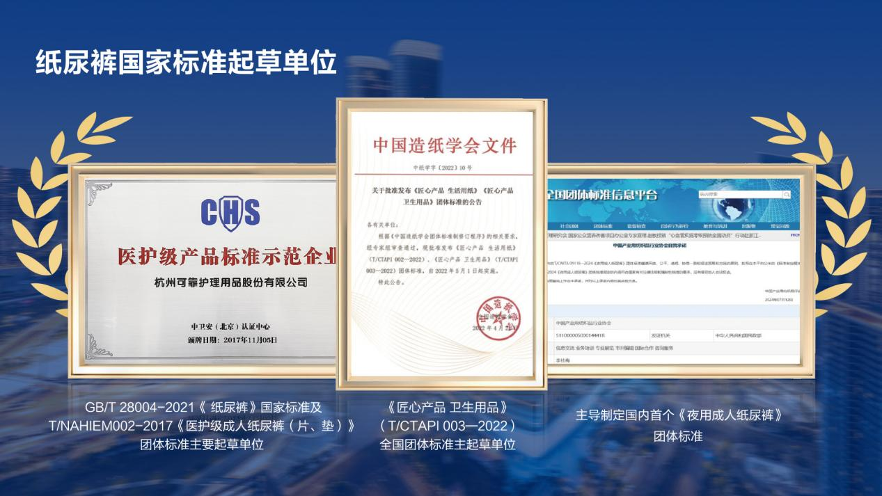 在很多消费行业里,品牌追随标准。但在成人护理行业,可靠股份做的事情是——参与制定标准。作为国家及行业标准的重要起草单位之一,可靠股份主导制定国内首个《夜用成人纸尿裤》(T/CNITA 09118-2024)团体标准,参与制定《纸尿裤 第2部分:成人纸尿裤》(GB/T28004.2-2021)和《一次性纸质卫生用品用复合吸收芯体》(QB/T 5650-2021)等国家、行业和团体标准30余项,今天行业普遍采用的许多品质指标背后都有可靠股份的参与,同时可靠的专利数量也居行业领先地位。