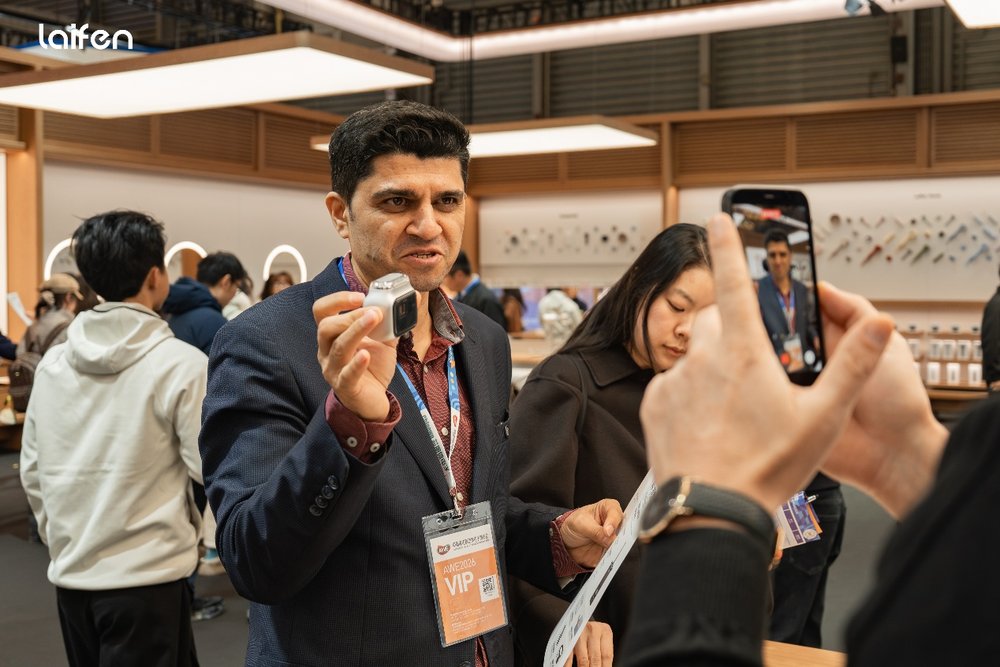 剃须刀系列更是徕芬展台的重头戏,针对男性用户长期被忽视的使用体验,徕芬在现场完整呈现了CNC五轴精雕工艺打造全金属机身的全过程,让每一个部件都可见可触碰,将剃须刀从功能性工具升格为值得展示的艺术品。