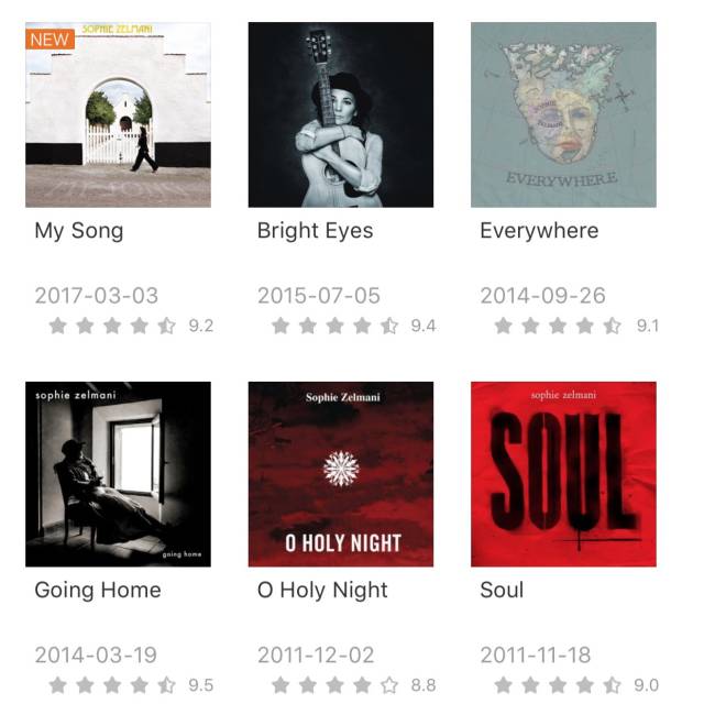 △苏菲·珊曼妮保持着平均两年一张专辑的速度,她的专辑在音乐网站上的评分也基本都在在9分以上