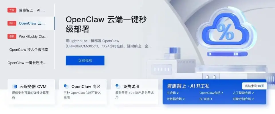 嗅觉灵敏的云厂商们迅速下场,纷纷推出自己的“一键部署”版本。腾讯云、阿里云、京东云……宣传语惊人一致:低价部署、快捷、秒级、零门槛。