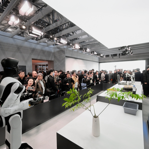 遗憾的是,今年的AWE上,为公众讲述这个故事的并不是特斯拉,他们的Optimus 3安静地呆在一旁的玻璃展柜里,聆听着上海新国际博览中心各个展馆里传出的观众惊呼声。