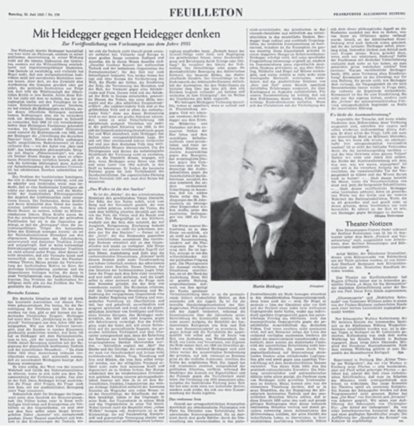 1949年至1954年,哈贝马斯先后辗转哥廷根大学、苏黎世大学、波恩大学学习哲学、心理学、历史学、经济学。一开始他的兴趣点在存在主义,尤其占据他研究重点的是马丁·海德格尔。然而在海德格尔于1953年再版的作品《形而上学导论》中,哈贝马斯发现他并未修改此前那些拥护法西斯主义的言论,保留了描述纳粹党“内在真理与伟大之处”的段落。年仅24岁的哈贝马斯在报纸上撰文,公开向海德格尔——当时德国最负盛名的在世哲学家——发起批评。在哈贝马斯2014年传记的作者斯蒂芬·穆勒-多姆看来,这一事件标志着哈贝马斯学术生涯的重要转折。