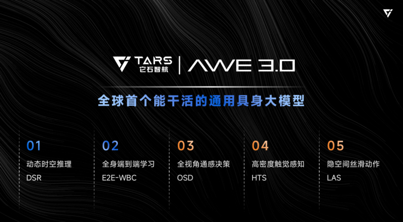 “AWE3.0赋能它石A1机器人,斩获了中国具身智能在工业精密操作领域的首个吉尼斯世界纪录!“它石智航具身通用大模型AWE3.0 暨数据解决方案 SenseHub 发布会”上,它石智航首席科学家丁文超博士发表演讲,并正式揭开全球首个能干活的通用具身大模型 AWE3.0的神秘面纱。这是业内首次进行柔性操作图灵测试的大模型,全面赋予了机器人实打实的产业能力,真正胜任复杂物理世界的落地工作。