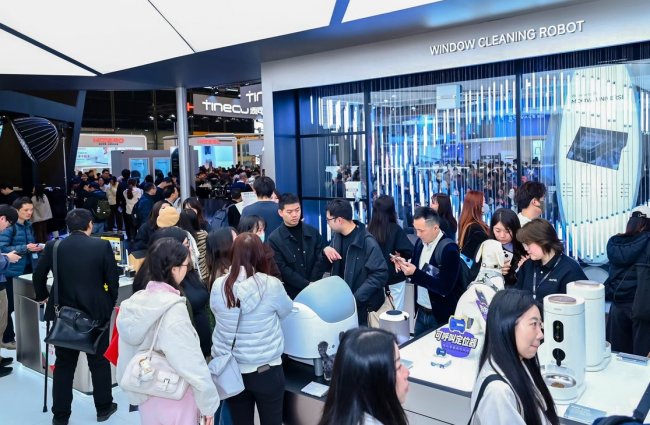 上海,2026年3月12日,AWE展馆内,人流最密集的区域之一,MOVA AI宠物生态「灵尾纪元」的展台被围得水泄不通。