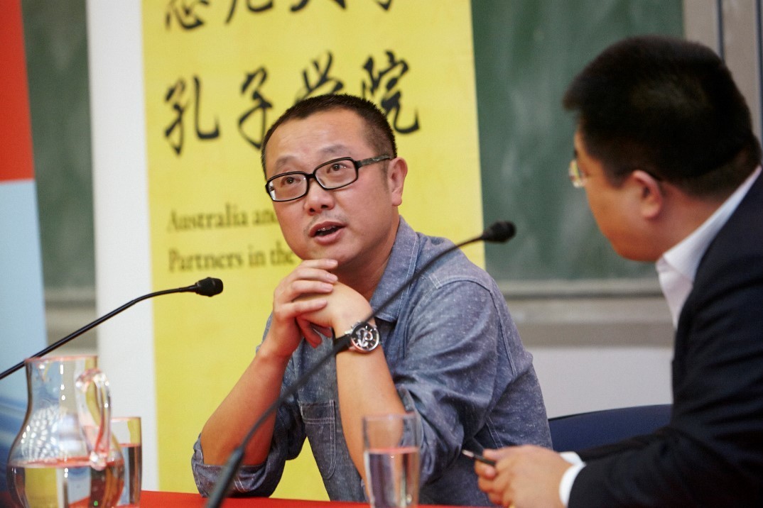 ▲2015年11月3日,刘慈欣参加悉尼大学“科幻小说中的中国未来”讲座。