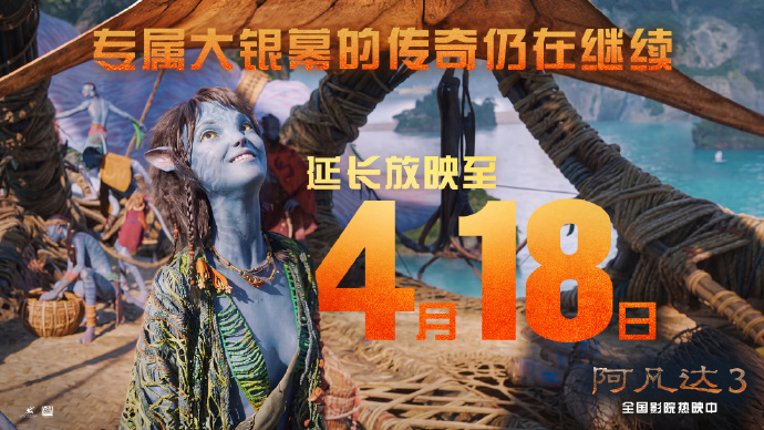 3月16日,电影《阿凡达3》官宣延长放映至4月18日。