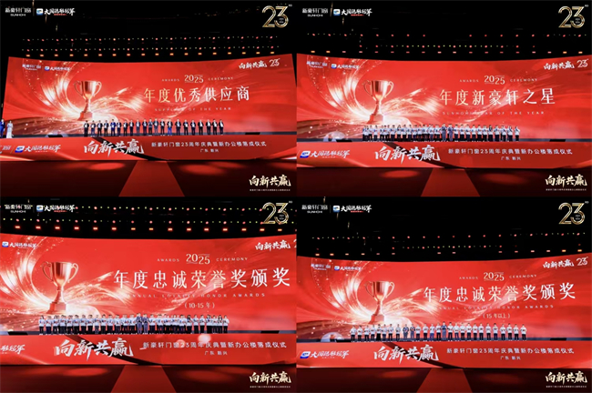 星光为幕,荣耀为名。在璀璨星空见证下,颁奖环节拉开帷幕——2025年度优秀供应商、新豪轩之星、10年忠诚荣誉奖和15年忠诚荣誉奖四大奖项依次揭晓。走上领奖台的,有风雨同舟的合作伙伴,有青丝染霜的忠诚员工,也有朝气蓬勃的新生力量。他们岗位不同、来路各异,却共同绘就新豪轩波澜壮阔的发展画卷。他们是新豪轩最珍贵的财富,更是百年基业最坚实的根基。