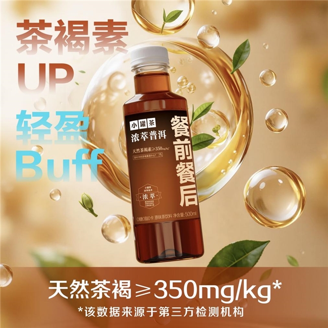 小罐茶此次推出的“浓萃系列”,正是对这一趋势的敏锐捕捉。首发单品选择“浓萃普洱”,并明确将其锚定在“餐前餐后”场景。在“解腻”成为餐饮场景刚需的当下,小罐茶通过“浓萃”技术,不仅还原了现泡普洱的醇厚,更强调了“天然茶褐素”这一核心成分的健康价值——每千克高于350mg的含量标注,让“解腻”这一模糊感受变得可量化、可视化。