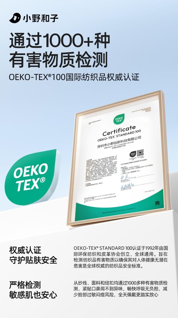 此类产品长时间紧贴面部且处于人体呼吸核心区域,面料的透气性与生态安全性至关重要。小野和子深知,每一寸面料都需经得起严格审视。这种对细节的执着,源于品牌始终站在用户角度设计打磨产品。好的防晒产品不应只是简单的遮阳工具,更应成为能给消费者带来防晒效果确定、面料安全无虞与的“安心之选”。小野和子选择主动通过国际最严苛生态安全认证,本质上是以全球化生态安全标准,坚守品牌对用户贴身健康的核心底线。