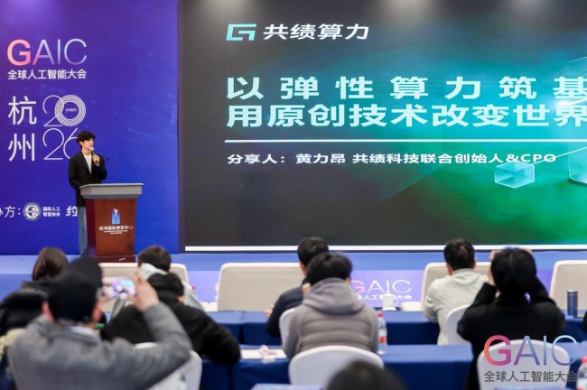 3月12日大会开幕首日,共绩科技联合创始人&CPO黄力昂作为首位分享嘉宾登台,发表题为《以弹性算力筑基,用原创技术改变世界》的主题演讲,深度解析AI产业面临的算力困境及共绩科技的创新解决方案。黄力昂指出,当前AI训练和推理成本居高不下的核心原因在于算力供给的“刚性”——资源要么闲置浪费,要么高峰时段供给不足,而共绩科技首创的“电网式算力调度网络”正是破解这一困境的关键。