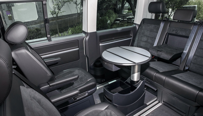 洗去初代浑圆身型的它与身边的普拉多等中大型SUV保障车形成了鲜明对比,平头造型的厢式面包车比T1和T2更具VAN味。接近于方盒子的造型成就了T5宽大到近乎癫狂的内部空间,相比于T3的倔强硬核做派,T5身上的亲民和商务味道更浓,偏商务的风格也就此成为了T系列车型的主要基调,它完成了从MINIVAN到MULTIVAN的身份转变。