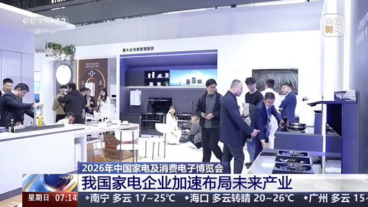 近日,央视CCTV-13新闻频道《朝闻天下》栏目将镜头对准了美大全场景智慧厨房。在2026年中国家电及消费电子博览会上,美大AI厨电体验区前围满了好奇的参观者。