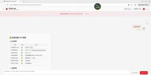 OpenClaw联动方正鸿云与主流搜索引擎,实现网站收录情况智能推送。实时监测期刊文章、期刊官网内容的搜索引擎收录状态,当内容完成收录或出现收录异常时,自动生成收录详情(含收录链接、收录时间、异常说明),通过钉钉/微信推送至相关负责人,无需人工查询核对,助力快速掌握学术内容传播动态,及时优化收录策略。