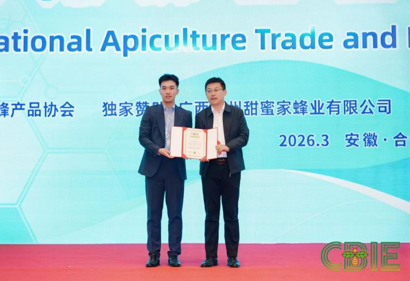图为中国蜂产品协会常务副会长兼秘书长孙国峰向Ian Dong颁发证书。(受访者供图)
