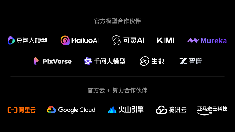 其模型合作伙伴包括豆包大模型、Hailuo AI、可灵 AI、Kimi、Mureka、PixVerse、千问大模型、生数、智谱等,覆盖视频生成、图像生成、多模态理解与音频创作等多个方向。在基础设施层面,LiblibAI 同时与阿里云、Google Cloud、火山引擎、腾讯云、亚马逊云科技等云与算力平台建立合作关系。