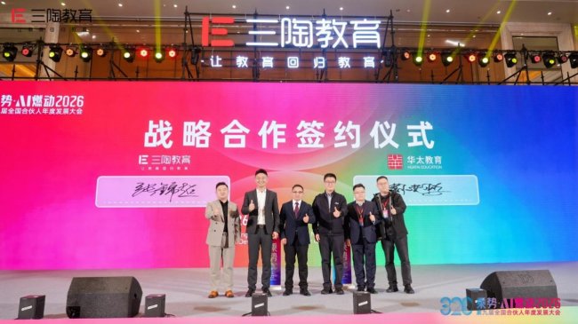 随后,三陶教育与华太教育现场举行战略合作签约仪式,华太教育总经理、高专委副秘书长刘建鹏表示“教育之路,同心致远。”双方依托领域优势,实现资源互补、强强联合,共同构建“教育+AI”的全新服务生态。