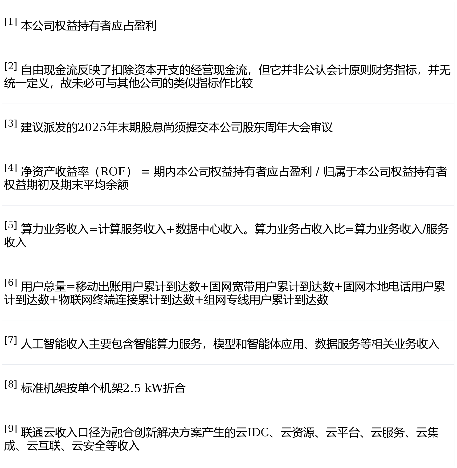 2025年,中国联通坚持 "守正创新、行稳致远" 主基调,高质量发展迈出坚实步伐。服务收入达到人民币3,477亿元,纯利为人民币208亿元,净资产收益率[4]达到5.7%,自由现金流达到人民币360亿元,按年增长28.5%。企业管治持续完善,公司获Extel(原《机构投资者》(Institutional Investor))连续十年评为 "最受尊崇电信企业" 。在实现经营业绩增长的同时,公司高度重视股东回报,董事会建议派发末期股息每股人民币0.1329元(含税),连同已派发的中期股息,2025年全年股息合计每股人民币0.417元(含税),按年提升3.1%,派息率提升至61.3%。