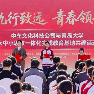 中车四方文化科技馆作为国内首个以“高铁”为主题的探索互动型科技展馆,打造集场景沉浸、互动体验、科普教学、文化传承与艺术审美于一体的多元科技空间,让大国重器成为可触可感、可学可悟的生动实践,既是青岛本地特色思政教育核心阵地,也是区域工业文旅打卡地标。此次与青岛大学携手开展思政实践基地合作共建,充分依托中车深厚产业资源与青岛大学完备学科体系,以生动的红色文化、工业文化为教材,让大国重器实践与高校思政教学深度融合,把理论课堂搬进实景现场,让青年学生在沉浸式体验中感悟自主创新之路、工匠精神与国之重器担当。