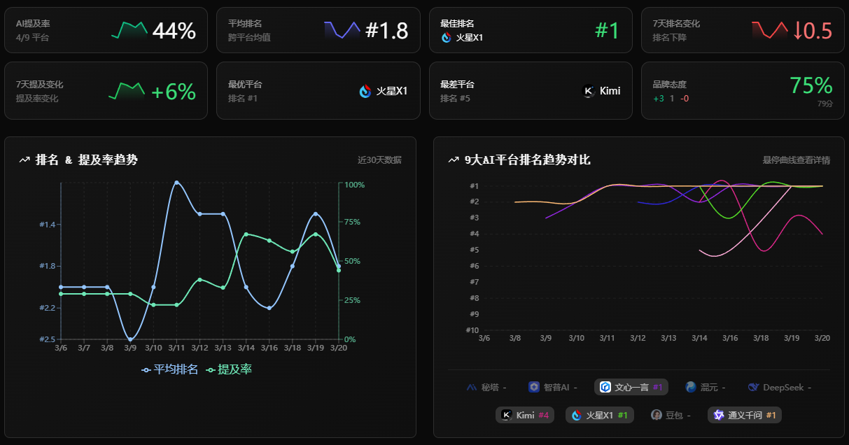 意味着它不是站在海外 GEO 逻辑上做一个“中文翻译版”产品,而是真正从国内用户的搜索和提问习惯出发,去看你的品牌在本土 AI